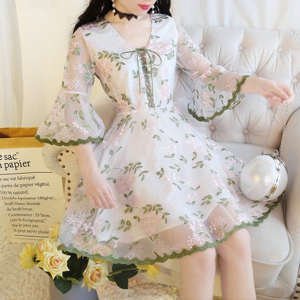 Sweet Lace Horn Sleeve Dress AD210088